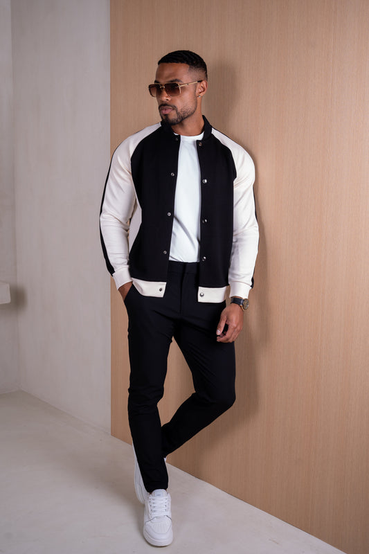 Panelled Scuba Varsity Jacket - Black