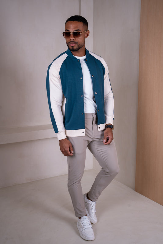 Panelled Scuba Varsity Jacket - Navy