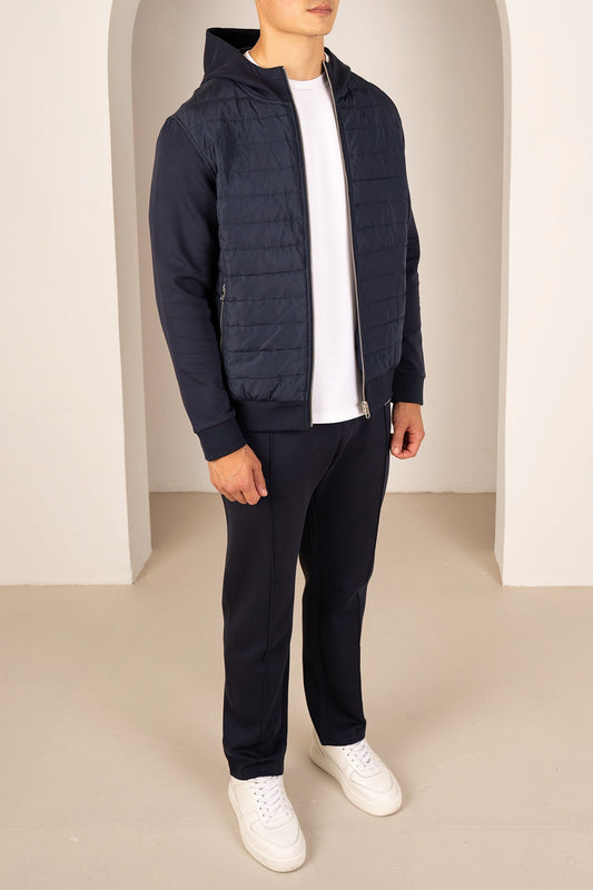 Hybrid Quilted Zip Through Hooded Jacket - Navy