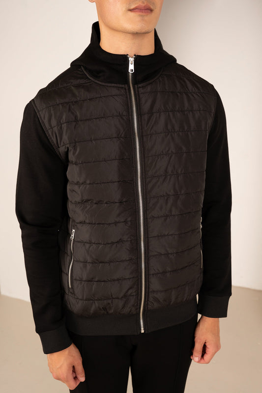 Hybrid Quilted Zip Through Hooded Jacket - Black