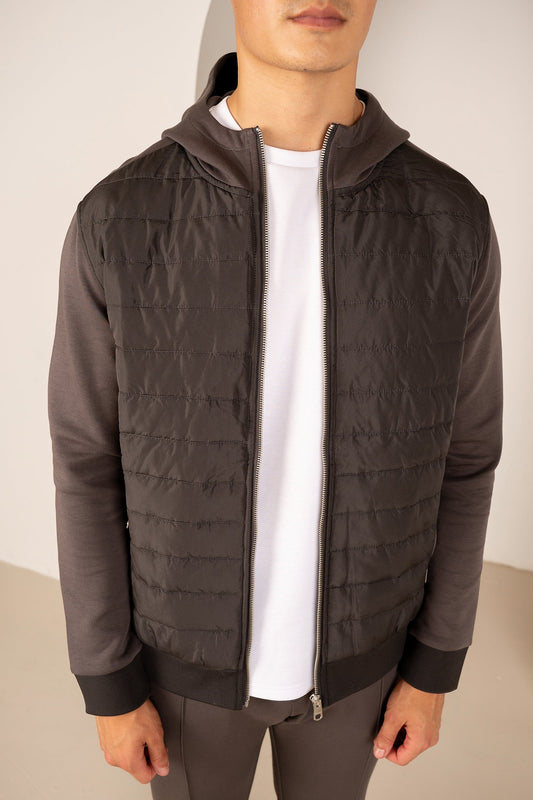 Hybrid Quilted Zip Through Hooded Jacket - Charcoal